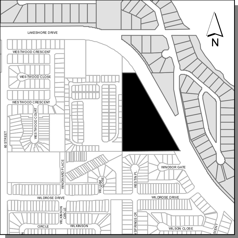 The Town is considering a proposal to re-district Pt. of the NW 32-38-1 W5 (5501 Lakeshore Drive) from Future Designation District (FD) to High Density Residential (R3) District. The re-districting will support future residential development on the property.